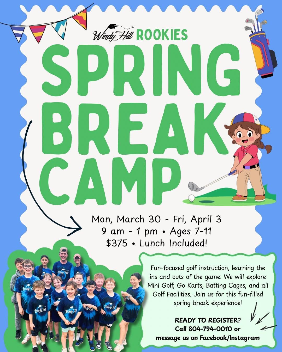 Fun-focused golf instruction, learning the ins and outs of the game. We will explore Mini Golf, Go Karts, Batting Cages, and all Golf Facilities. Lunch is included in this fun-filled spring break experience!