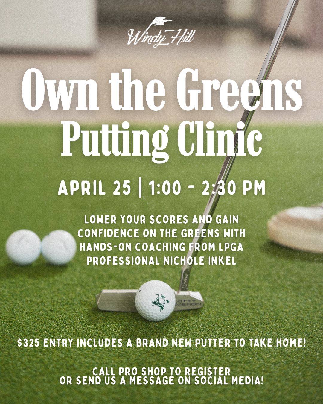 Join LPGA Professional Nichole Inkel for a 90-minute putting experience designed to improve your scores by increasing putts made from all locations on the green.