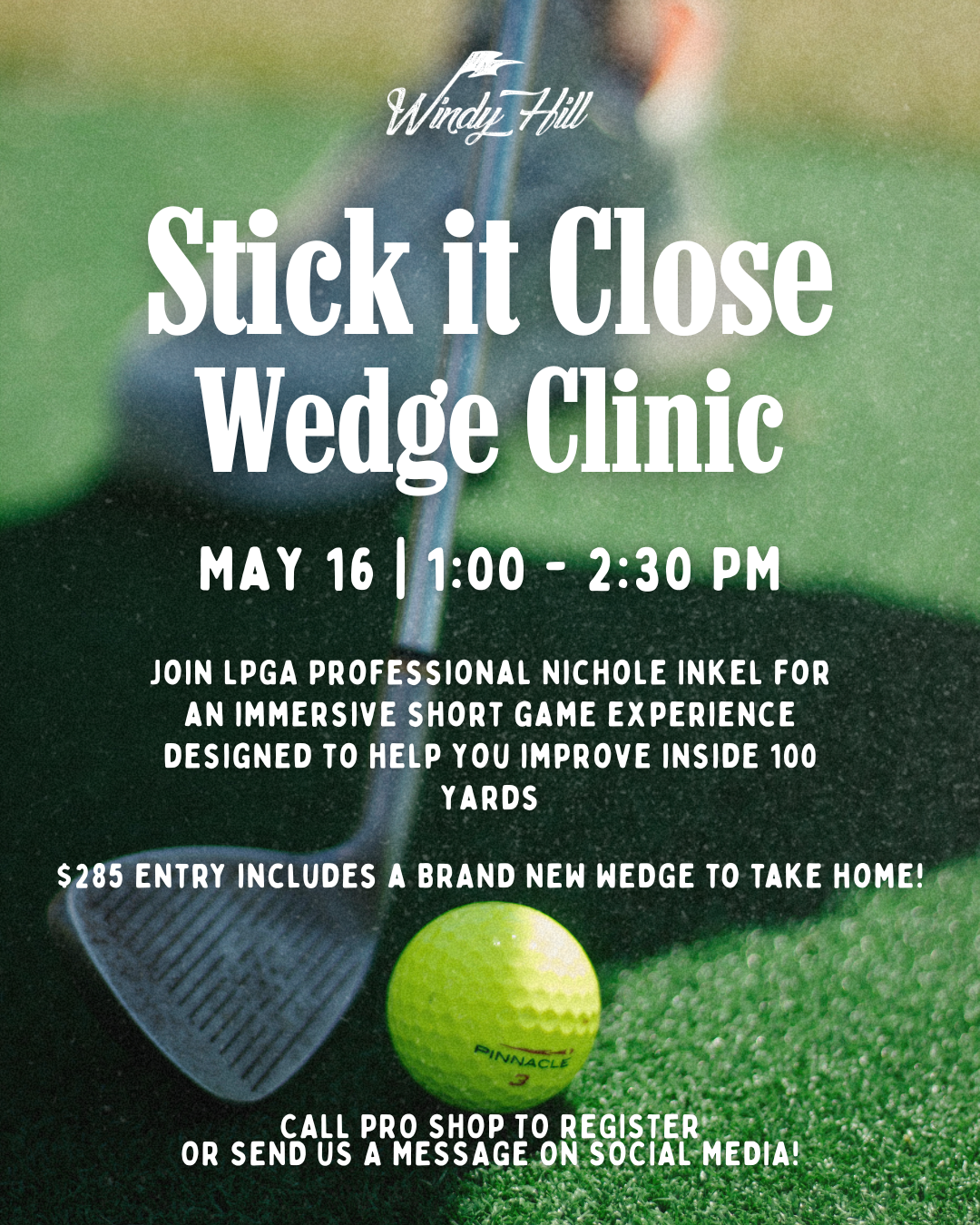 Join LPGA Professional, Nichole Inkel for a 90-minute immersive short game experience designed to help you improve inside 100 yards.
